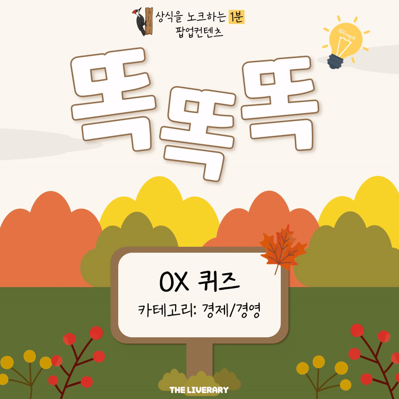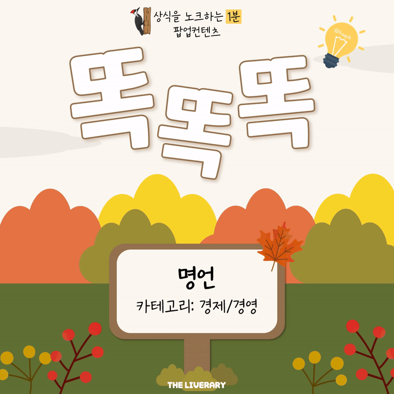 “똑똑똑” 상식을 노크하는 1분, 똑똑똑은요매주 딱 하루만 만날 수 있는 POP콘텐츠로 팝콘처럼 ‘팝’ 터지는 맛있는 1분을 상상하고 만들었어요.10월에는 ‘경제/경영’ 분야에서 콘텐츠를 구성해보았습니다.매주 딱 하루…! 노크했던 똑똑똑 콘텐츠를 모아서 볼까요? 10월 1주_명언 편