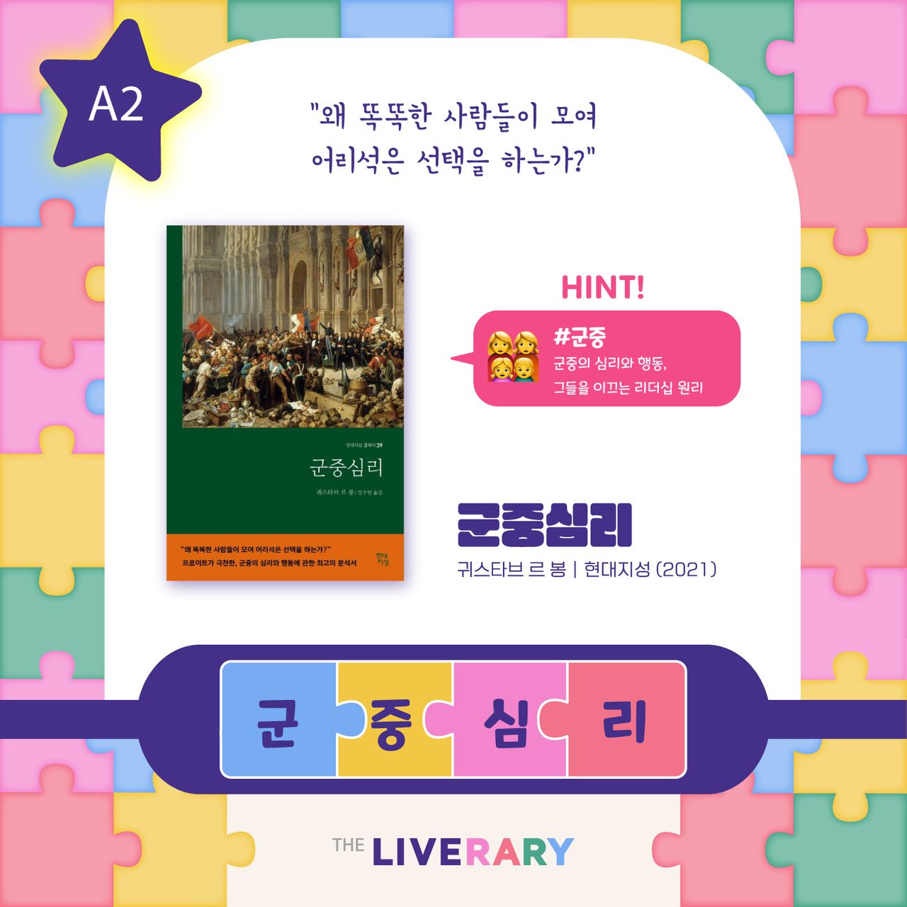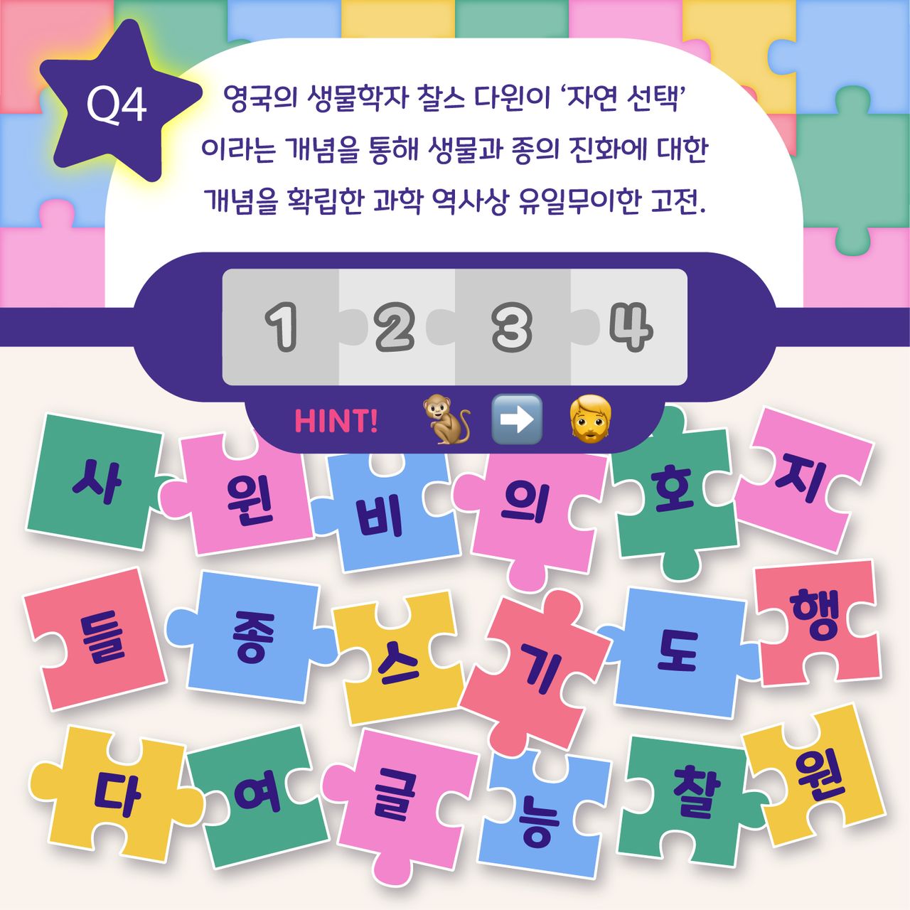 연관 북워드 퀴즈는제시되는 검색어를 확인하면서도서의 제목을 맞히는 게임입니다.어떤 도서인지 유추해보셨나요?그럼 정답을 확인해볼까요~정답은 바로...