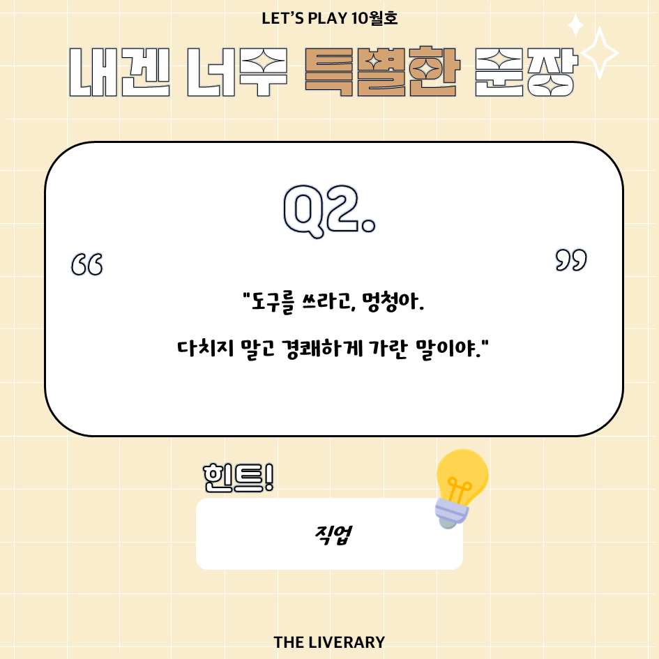 2025년 6월부터 8월까지 전국 도서관 사서선생님들이 선정한분야별·연령별 추천도서인 사서베스트* 중 일부를해시태그 퀴즈로 구성했습니다. 다음의 #해시태그로 연상되는 도서명을 맞춰 보세요!*전국도서관 사서선생님들이 좋은 신간도서를 추천하는 좋은 책읽기 운동. [1번 문제] ‘해시태그’로 연상되는 도서가 있나요?아래 3개의 보기에서 ‘정답’을 찾아보세