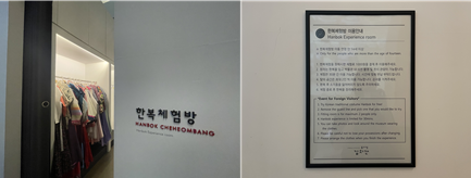 코로나19 이전에는 한복 체험도 해볼 수 있었으나 현재는 밖에서 한복을 아련하게 바라볼 수 있습니다.