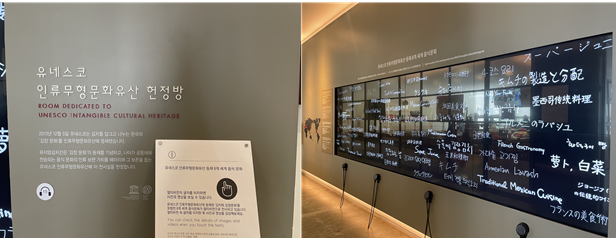 뮤지엄김치간의 마지막 방으로 유네스코 인류무형문화유산에 등록된 음식들을 화면에 표현했다