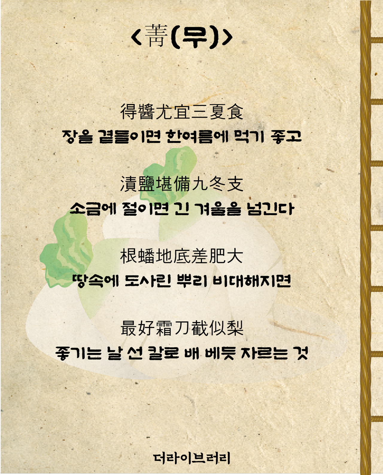 그중 김치는 무를 주제로 한 시 ‘菁(청)’에 쓰여 있는데요.