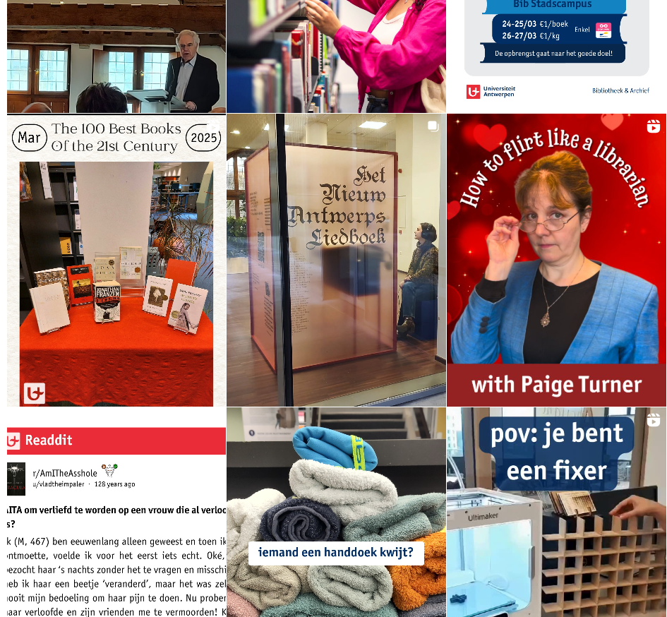 뿐만 아니라 이용자들과의 소통을 위해 인스타그램, 페이스북, 틱톡과 같은 소셜미디어를 매우 적극적으로 활용하고 있으며, 소셜미디어 콘텐츠를 담당하는 커뮤니케이션팀은 재미있고 젊은 감성으로 신선한 콘텐츠를 업로드하고 있다. 도서관 안팎으로 벌어지는 일들을 소셜미디어를 통해 나누기도 하고, 페이지 터너(Paige Turner, 책장을 넘기는 사람이라는 영어 단어와 발음이 같다)라는 가상의 사서 캐릭터를 만들어 직접 사서 연기를 하게 하며, 도서관 정보를 유머러스한 요소를 섞어 젊은 세대들이 이해하기 쉽게 짧은 비디오로 만들어 업로드하기도 한다. 이는 타 도서관들에게 귀감이 되어 베네룩스 문헌정보컨퍼런스에서 케이스 스터디 사료로 발제되기도 했다.
