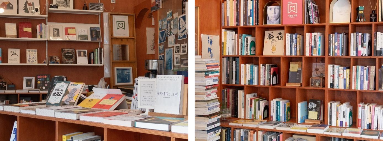사진, 예술, 문학, 에세이 분야의 도서가 큐레이션되어 있으며 패브릭 포스터와 사장님이 직접 찍은 사진으로 만든 책보자기, 엽서도 함께 판매하고 있습니다.