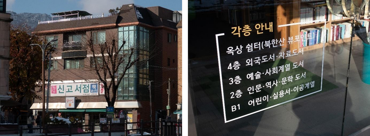 신고서점 외관(좌) | 신고서점 층별 안내(우)