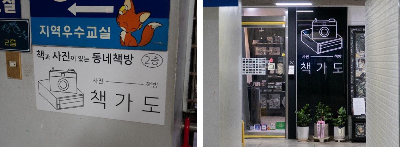 마지막으로 찾은 신선한 비주얼의 책방, 책가도는 쌍문동의 아파트 단지 내 상가 2층에 자리하고 있습니다. 상가 계단을 따라 올라가면 바로 책방 입구가 보입니다.