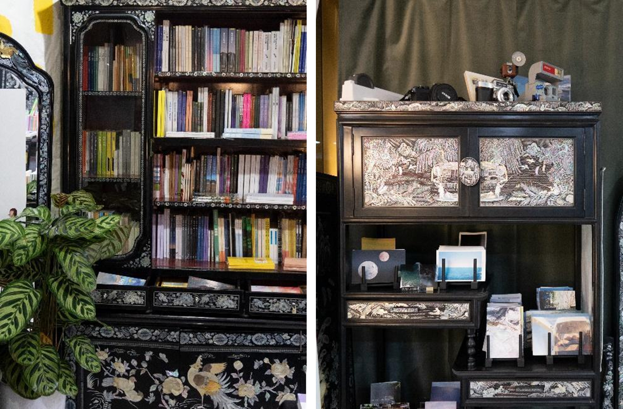 그동안 많은 책방을 방문했지만, 가장 신선한 비주얼의 책방이었습니다. 새롭고 독특한 비주얼의 큐레이션 책방을 찾고 있다면 자개장이 가득한 책가도를 방문해보세요!
