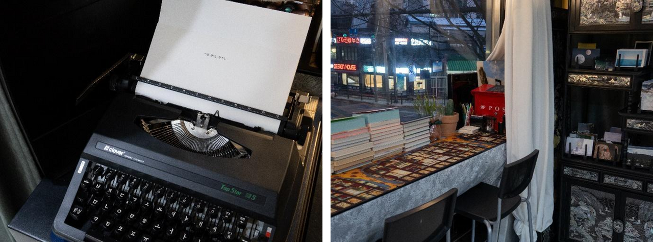 소품으로 비치한 타자기와 창가에 마련된 자리