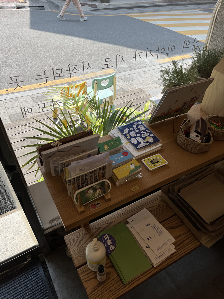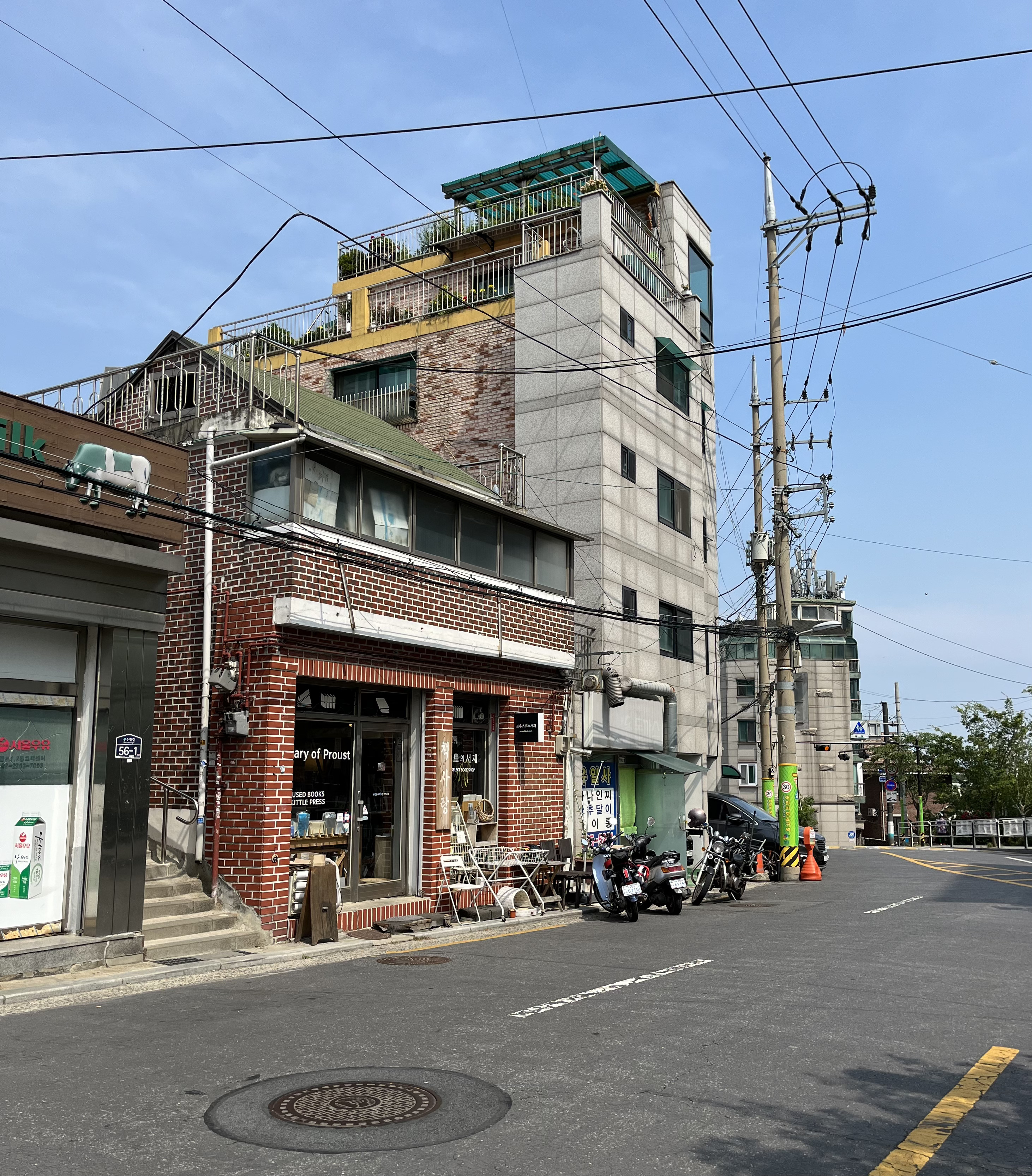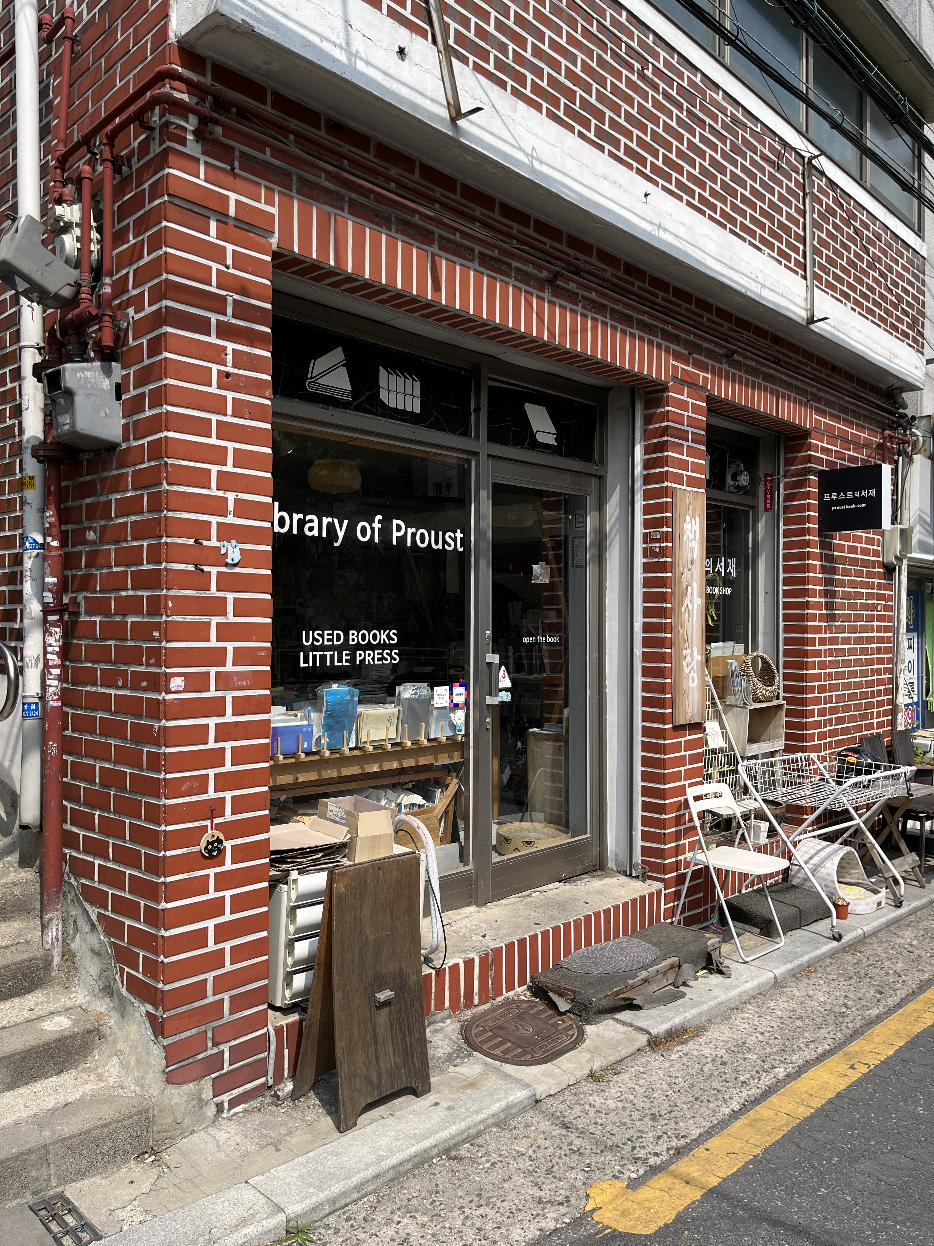 붉은 벽돌의 외관, 프루스트의 서재를 멀리서도 발견할 수 있었습니다. 통유리창 안쪽에서 언뜻 보이는 귀여운 실루엣에 저도 모르게 문을 열었습니다. 그러자 공간을 채운 책방 주인의 취향이 눈에 가득 채워지더군요.