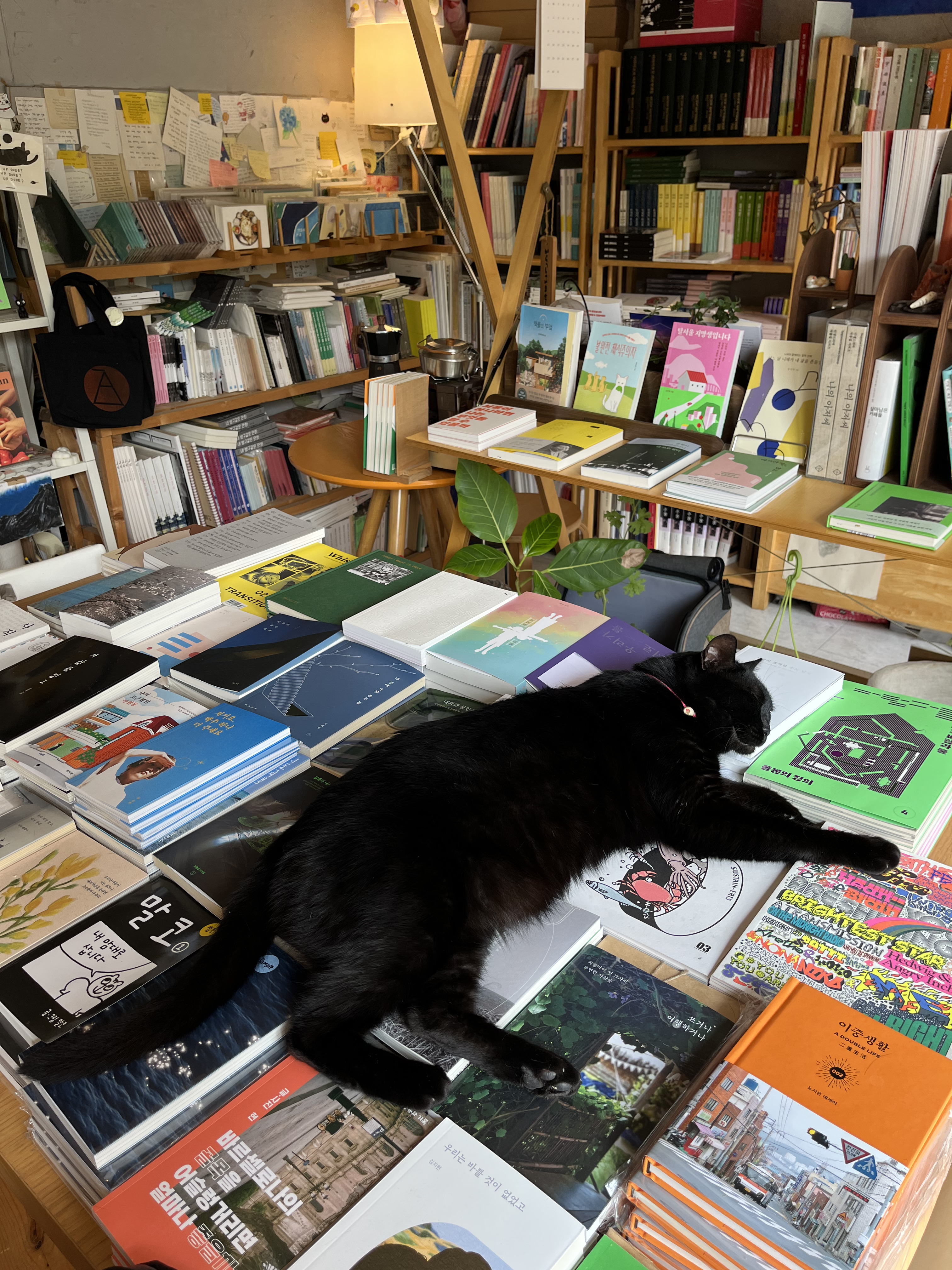 바로 따뜻한 이곳에서 낮잠을 청하고 있는 검은 고양이였는데요. 까맣고 순하다는 뜻의 ‘까순이’라는 이름을 소유하고 있었죠. 프루스트의 서재는 고양이와 함께 운영하는 책방입니다. 책을 구경하는 동안에도 가만히 낮잠에 집중하던 고양이였습니다. 프루스트의 서재 공식 인스타그램에 따르면, 까순이는 말이 많은 편이라고 합니다.