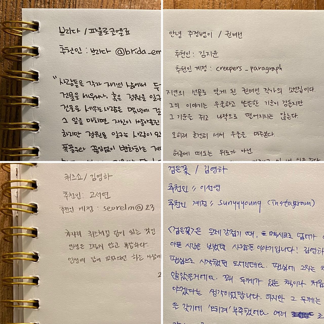 문을 연 뒤로 생각보다 많은 손님들에게 책을 추천해주거나 추천받았다. 물론 ‘어서오세요’와 ‘조심히 돌아가세요’라는 인사 외에 한 마디도 나누지 않은 손님들이 훨씬 많았다. 책을 추천하거나 추천받고 싶지만 직접 얘기 나누기를 꺼려하거나 낯부끄러워하는 손님들도 분명히 있을 것이었다. 그분들의 이야기를 자연스럽게 꺼낼 수 있는 방법이 없을까 고민하다가, 노트 한 권과 조그마한 상자 하나를 가게 한 구석에 준비해두기로 했다.