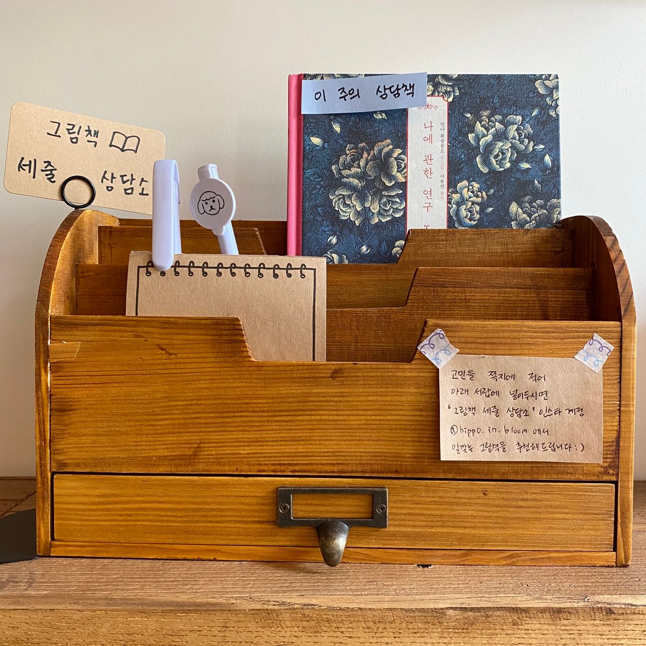 첫서재 문을 닫고 직장으로 복귀한 지금도 가끔씩 처음노트와 그림책 상담소의 쪽지를 열어본다. 거기 담겨 있는 작고 귀한 마음들이, 직장이라는 거대한 생태계에서 이리저리 휘둘리는 지금의 작고 여린 나를 단단하게 지켜주는 것만 같아서 말이다. 설사 지켜주지는 못할지라도 적어도 ‘네가 잘못된 건 아니야’라고 속삭여주는 것만은 분명하다. 누군가에게 추천해주고 상담해주고자 열었던 무언가가 시간이 지나 지금은 나를 말없이 상담해주고 있는 셈이다. 그런 속 깊은 위로를 얻을 때마다 내심 몇 번이고 되뇌게 된다. ‘첫서재 하기를 참 잘했어’라고.