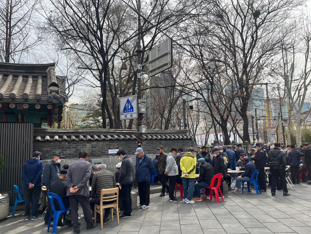 어르신들이 모여 계시는 탑골공원의 모습