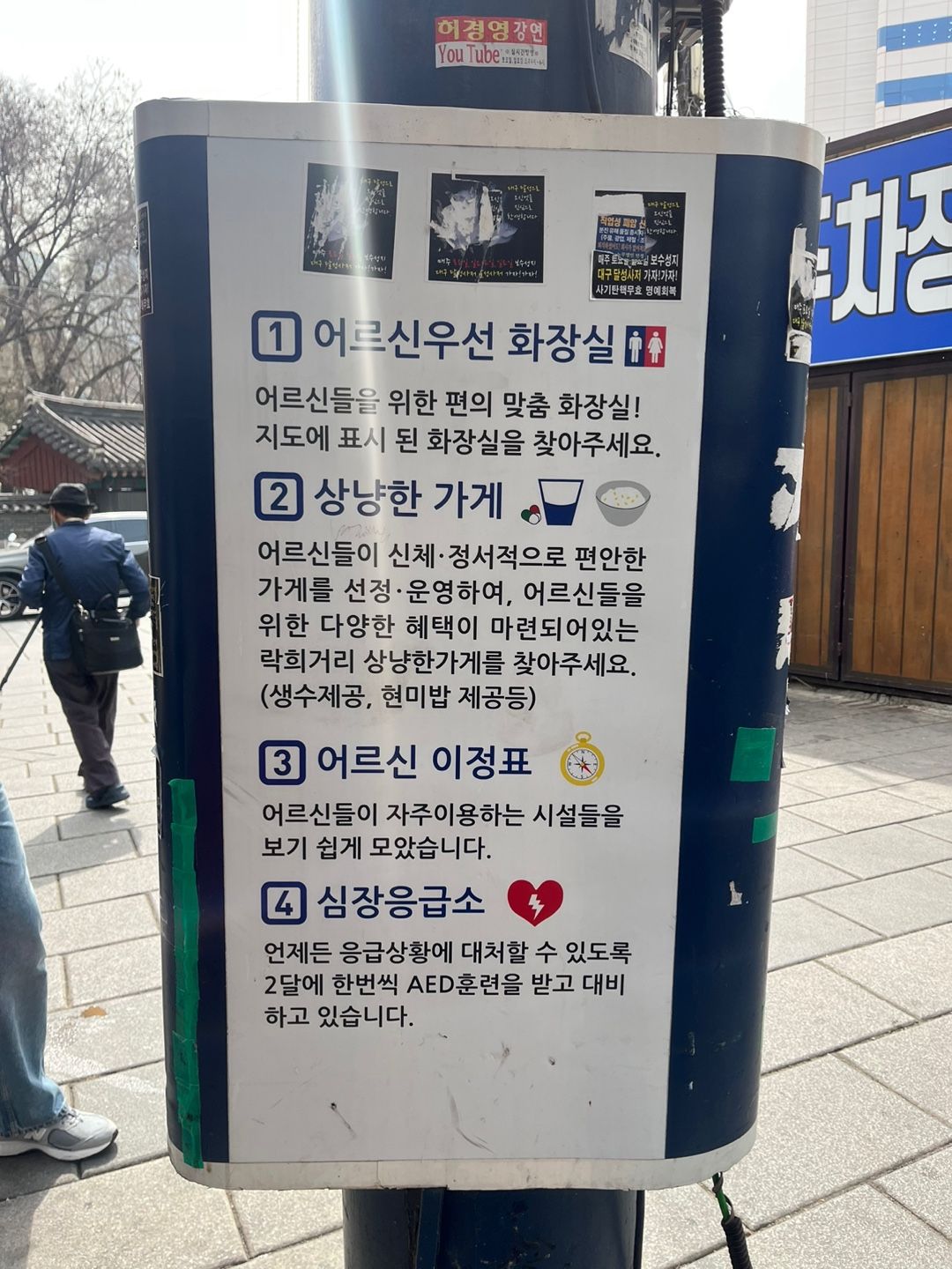 이 짧은 거리는 바로 고령자 친화거리입니다. 이 곳에는 어르신들을 위한 룰이 존재합니다.