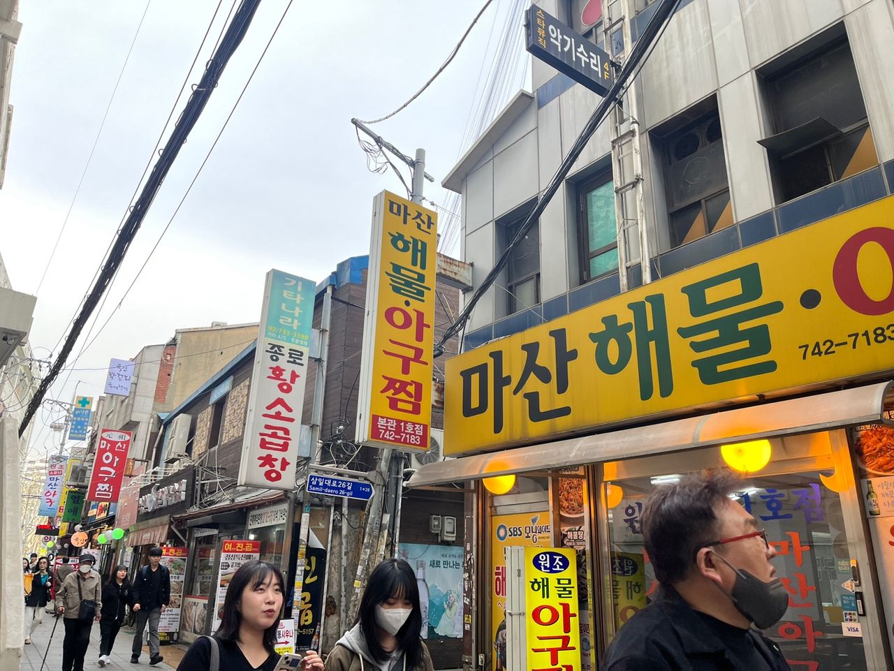 5호선 종로 3가역 4번 출구로 나와 아구찜 거리 사이로 들어가면 한옥거리의 시작점이 보입니다.