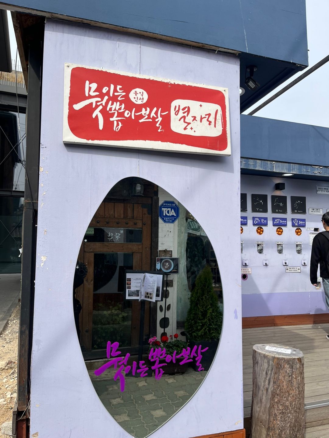 익선동 한옥거리 곳곳에 장식되어 있는 벽, 카페의 장식이다.
