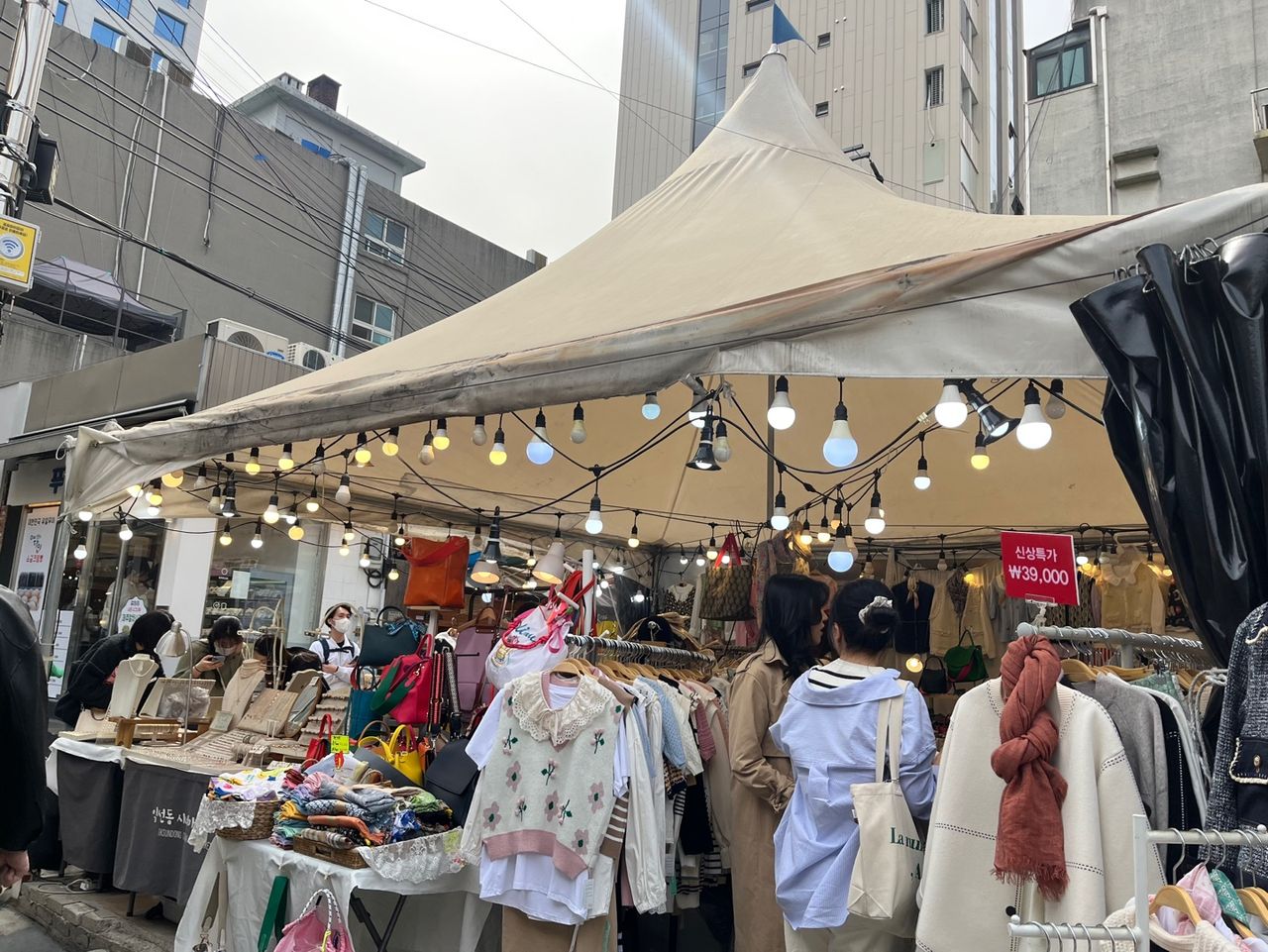 운세 뽑기 옆에는 플리마켓을 운영하고 있었습니다. 강아지 옷부터 향수, 휴대폰 액세서리까지 다양한 물품을 판매하고 있었습니다.