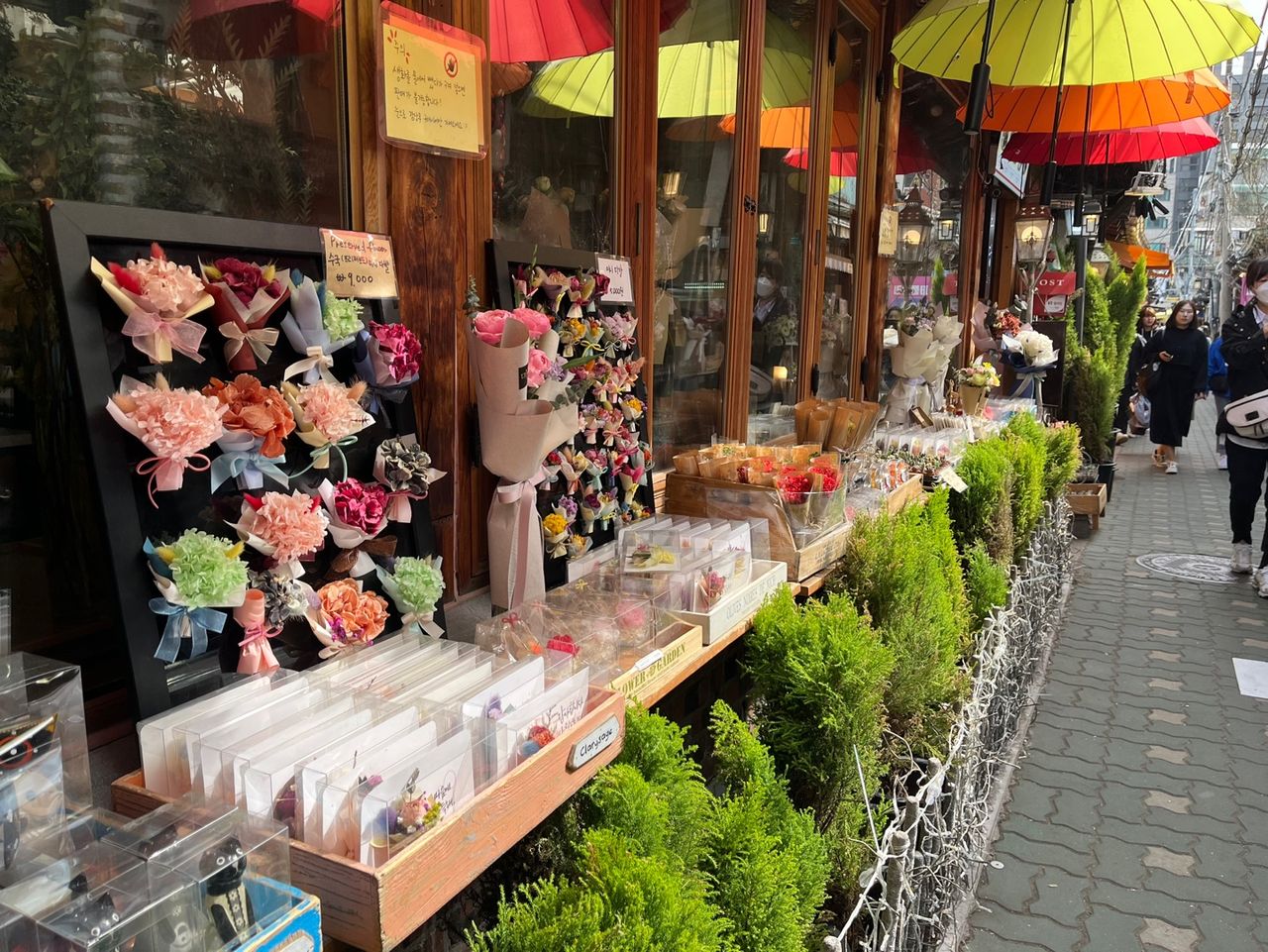 우산 길에는 플라워카페답게 여러 꽃을 팔고 있었습니다.