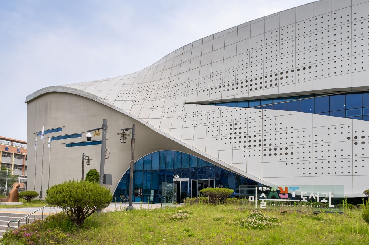 의정부의 뉴타운 민락동에 위치한 의정부미술도서관은 외관만 본다면, 도서관이 아니라 그냥 최근에 지은 신축 건물인가 여기며 지나칠 수 있는데요. 건축에 관심이 있는 일부만이 건축 디자인이 독특하구나 하고 잠시 시선을 멈출 뿐이죠. 하지만 삶의 질을 가늠할 때 도서관을 높게 따지는 사람이라거나, 특히 미술에 관심이 있다면 절대 그냥 지나칠 수 없는 도서관이 의정부미술도서관입니다. 대한민국에 있는 최초이자 유일한 미술 전문 공공도서관이기 때문입니다.