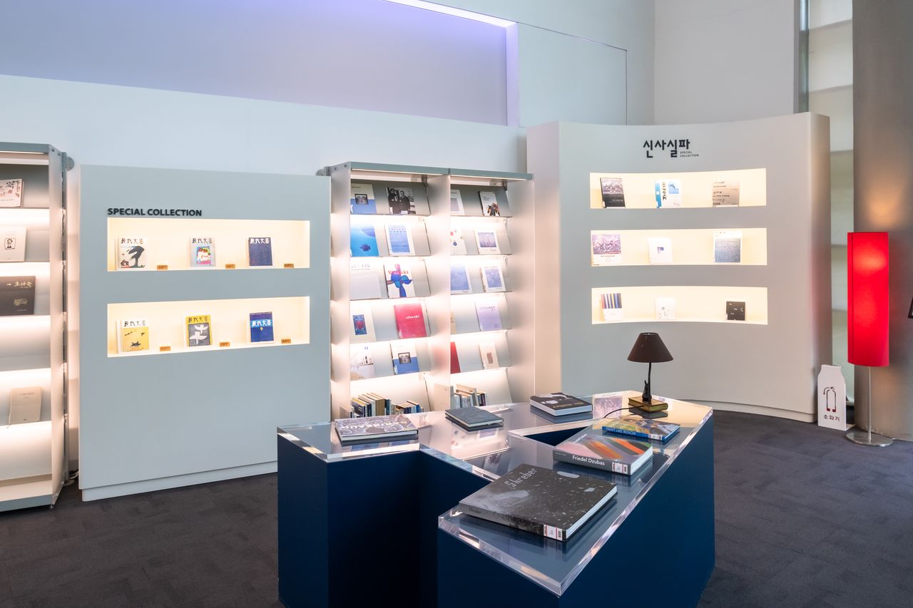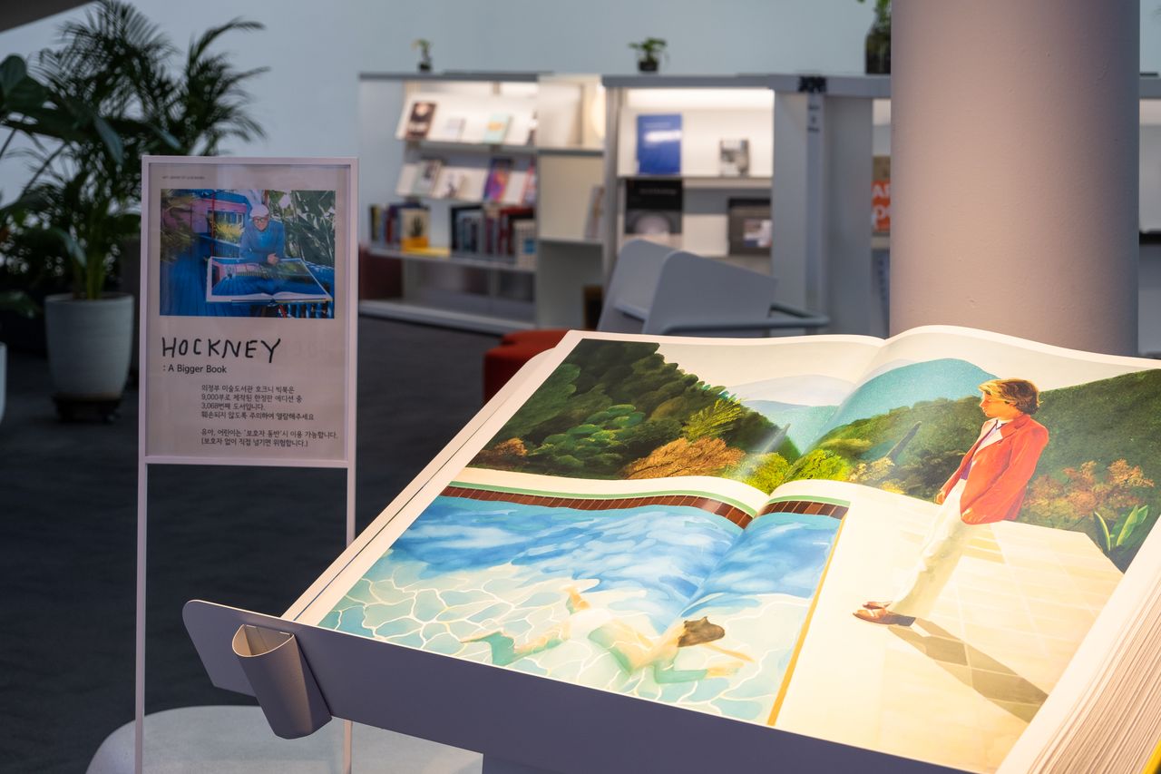 1층 한쪽에는 의정부미술도서관 건축의 모티브가 된 백영수 작가를 기리는 신사실파 섹션도 따로 마련되어 있습니다. 또한, 전 세계에 9천 부밖에 없는 ‘호크니 빅북(Hockney: A Bigger Book)’ 에디션의 3,068번째 도서도 직접 살펴볼 수 있는데요. 귀한 책이니만큼 아끼면서 봐주세요.