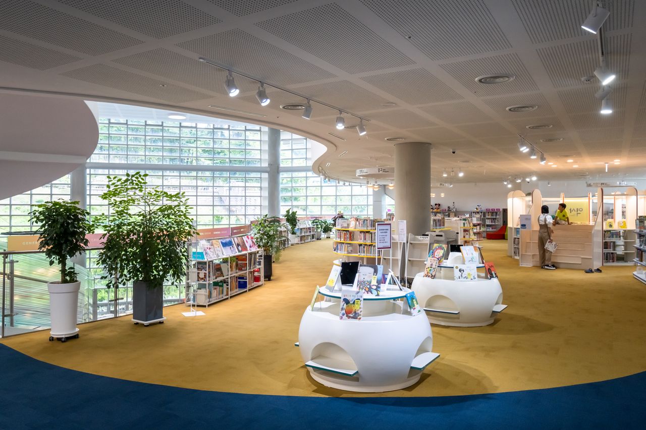 2층 ‘제네럴 그라운드’에서는 어린이 도서와 일반 도서를 찾아볼 수 있는데요. ‘어린이 자료’ 공간에는 동화 구연 등을 할 수 있는 작은 무대와 엄마들을 위한 수유실도 마련되어 있습니다. 태블릿이나 휴대전화 대신 책을 들고 뒹굴뒹굴하는 아이들의 모습이 너무 반갑네요.