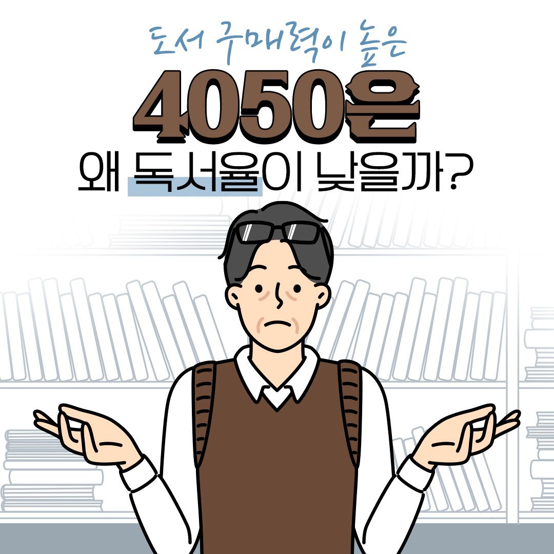 4050세대는 인생에서 활동력이 가장 왕성한 시기이지만 소위 ‘낀 세대’라고 불리며 2030세대와 시니어 세대의 중간에서 상대적으로 주목받지 못한다. 이러한 취지에서 2023년 ‘4050 책의 해’ 출범과 함께 중장년이 새롭게 리마인드할 수 있도록 다양한 책문화 행사가 진행되고 있다. 4050세대가 모여 활동하고 있는 독서모임을 찾아보고, 참여자들의 목소