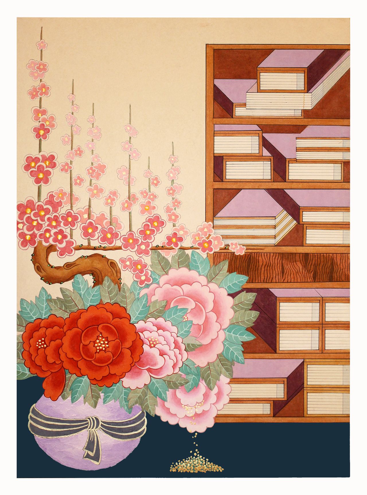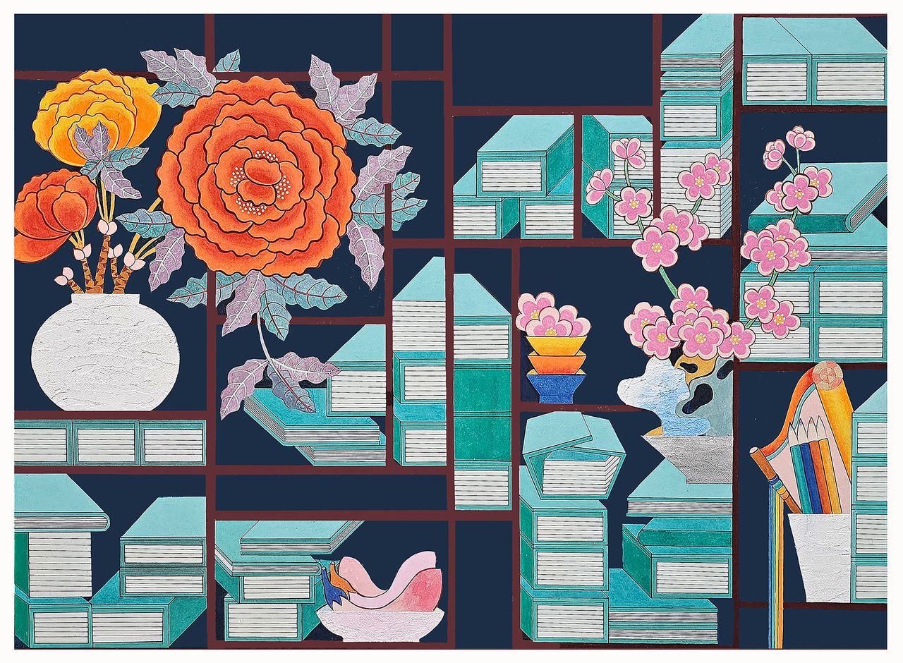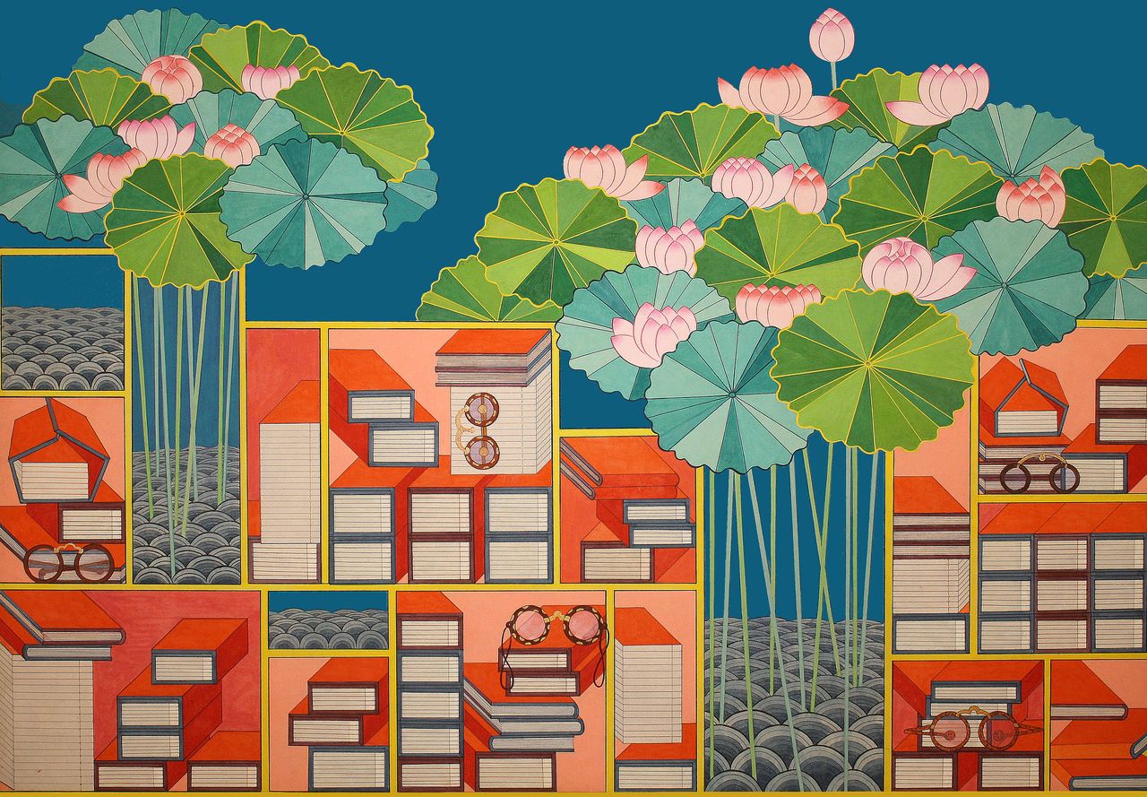 정두화 작가의 작품 소재는 오로지 ‘책’이다. 정확히는 책을 활용한 ‘펄프회화’다. 그가 헌책을 모아 작품의 재료로 삼기 시작한 것은 대략 25년이 넘었다. 늦깎이 미대 재학시절부터 이미 다양한 종류의 책을 모아 작품으로 제작했다. 일일이 낱장에 풀칠해 탑처럼 쌓아 건조시킨 후, 균일하게 썰어 다양한 패턴으로 작품화했다. 매우 긴 물리적 시간을 인내해야만