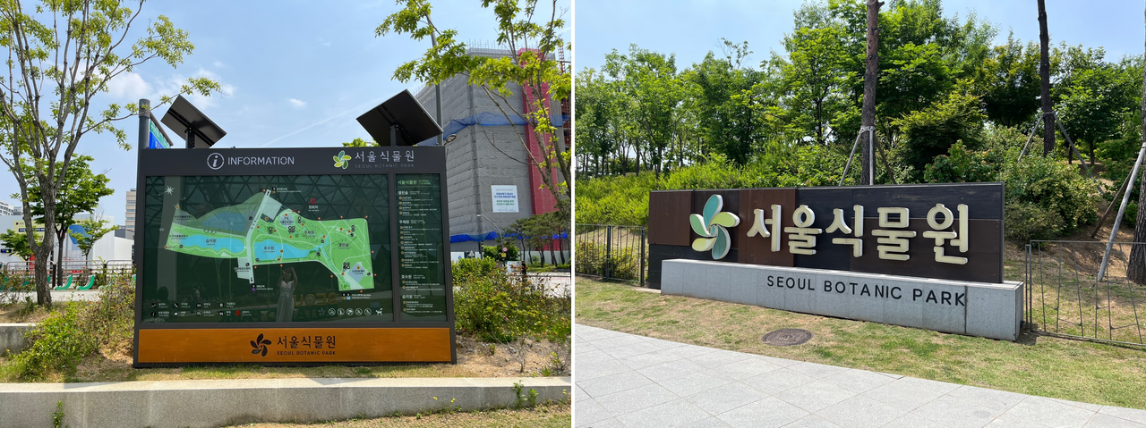 길 건너편에서 바라본 서울식물원 모습서울식물원 간판(좌) / 서울식물원 안내판(우)