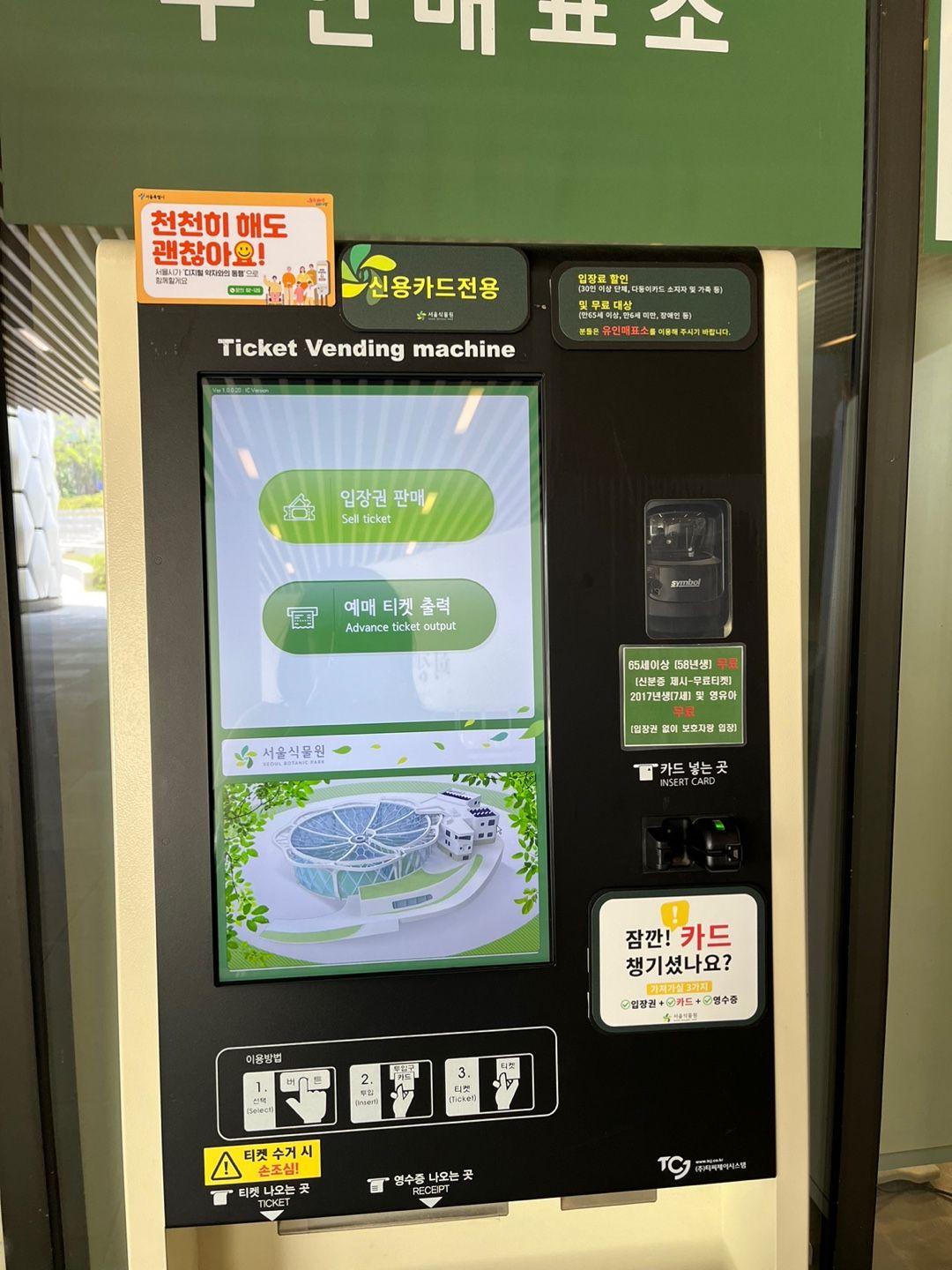 돔 건물을 마주하고 왼쪽으로 들어오면 입장권을 구매할 수 있는 매표소가 바로 있습니다. 서울식물원의 입장권 구매는 키오스크로 해야 합니다. 일반인의 경우는 키오스크를 사용하여 입장권을 구매하고, 무료 이용 대상자의 경우 매표소에서 신분증 및 신원 확인을 위한 증빙자료를 제시한 후 입장권을 받을 수 있습니다.