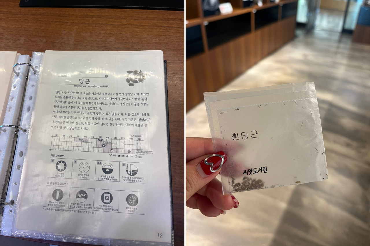 씨앗 도감(좌) / 흰당근 씨앗(우)