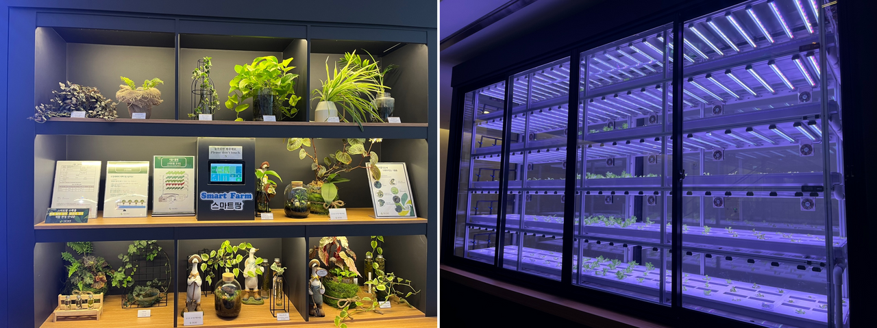 씨앗도서관을 나와서 2층으로 올라가는 계단 앞에는 스마트팜이 있습니다. 스마트팜이란 식물의 생산과 보급의 전 과정에서 정보통신기술을 접목한 지능형 생산 시스템을 말합니다.