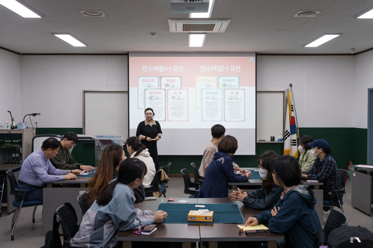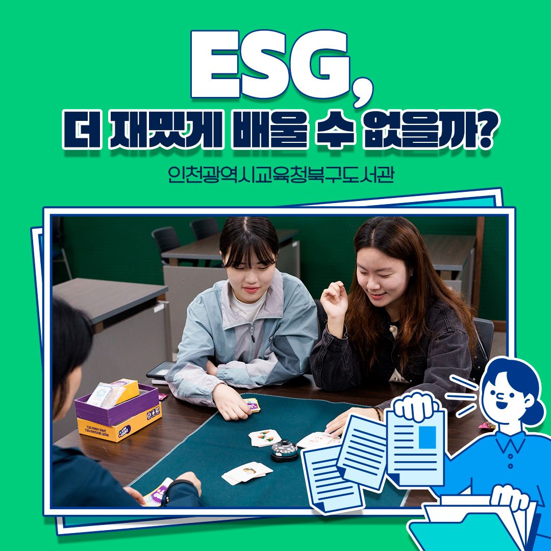 지난 10월 중순, 토요일이었지만 10여 명의 사람들이 인천광역시교육청북구도서관을 찾았다. 이날 진행된 프로그램은 ‘녹색지구를 위한 ESG’. 최근 경제·사회적으로 중요한 키워드가 된 ESG에 대해 이해하고 탄소중립과 ESG를 보드게임으로 즐기며, 친환경 제습제를 만들어 보는 프로그램이었다.