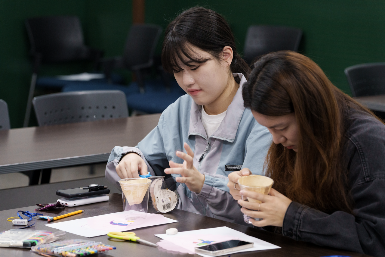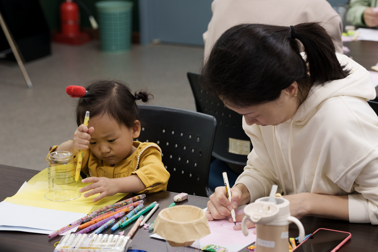 뒤이어 염화칼슘과 폐 일회용컵을 활용해 간단하게 제습제를 만들어보는 순서를 가졌다. 종이에 알록달록한 그림을 그리고, 염화칼슘을 담은 컵 위를 덮어 만드는 방식이었다. 참여자들은 환경, 가족 등을 주제로 하거나 좋아하는 캐릭터를 그림으로 그리며 나름의 미적 감각을 뽐냈다. 세 살 아이와 동행한 한 참가자는 “ESG에 대한 궁금증을 해결할 수 있어 좋았고, 주말에 아이와 함께 도서관에서 이러한 행사를 즐겨보니 만족스러웠다”고 말했다.