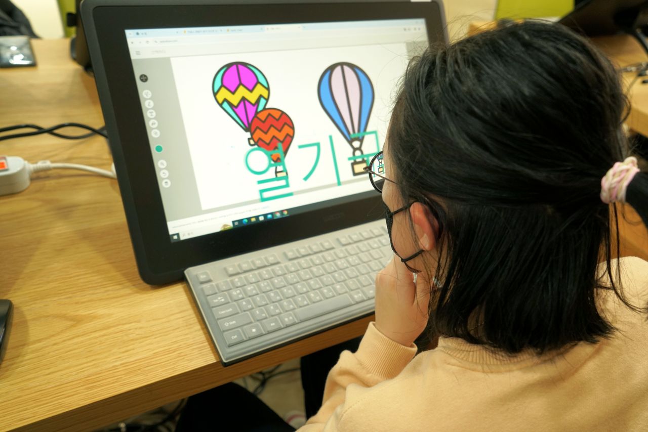 ‘오토드로우’ 프로그램으로 열기구 그림을 제작하고 있다.