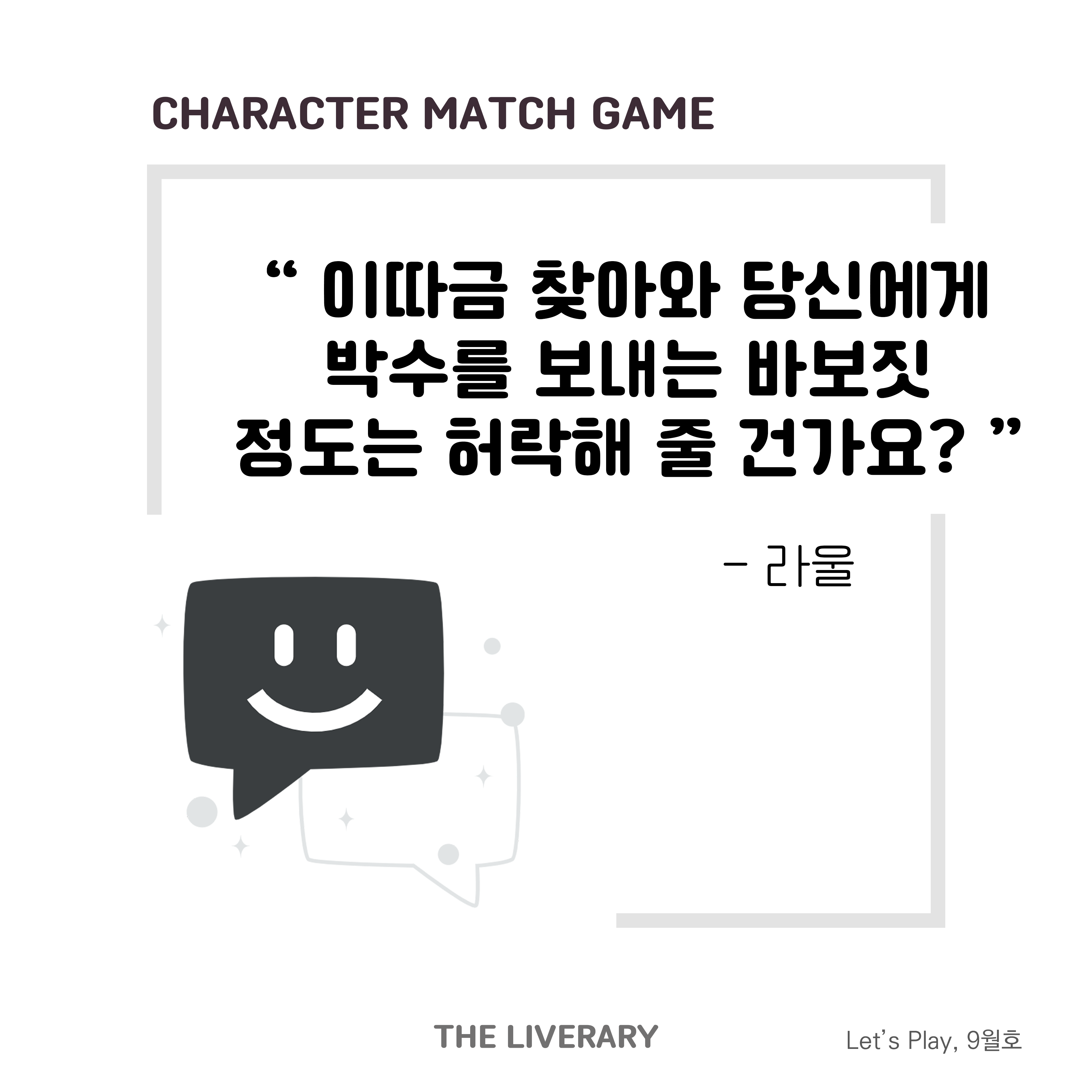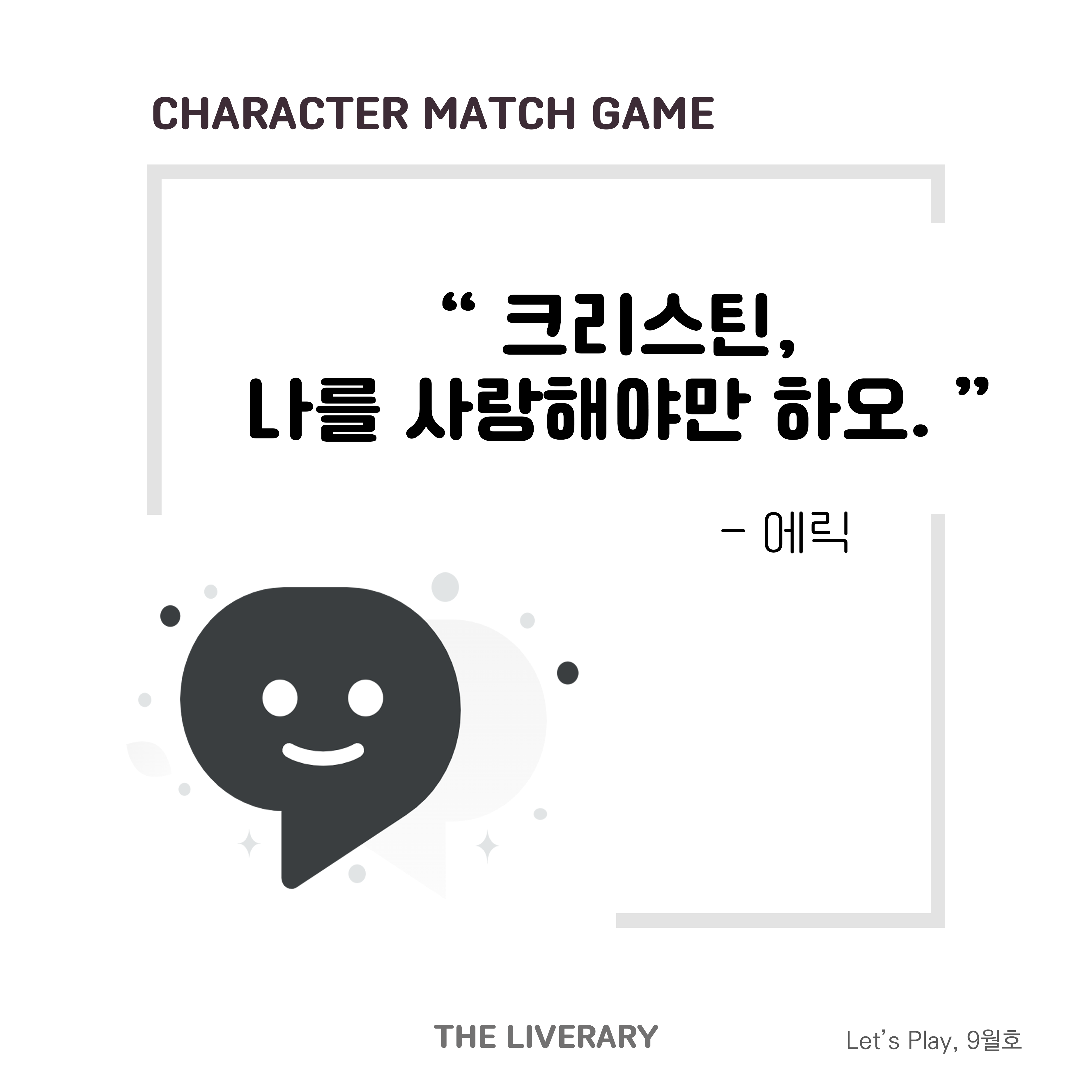 십자말풀이? 십자책놀이! 책을 사랑하는 모든 이들의 독서력을 위한십자책놀이 퀴즈 시간입니다 - ! 네모난 격자 속에 숨겨진 문제를 모두 풀어보셨나요?과연 각 정답/단어는 무엇일까요? 3··2··1·· 헷갈렸던 도서, 작가, 키워드의 책을오늘, 다시 펼쳐보는 건 어떨까요?