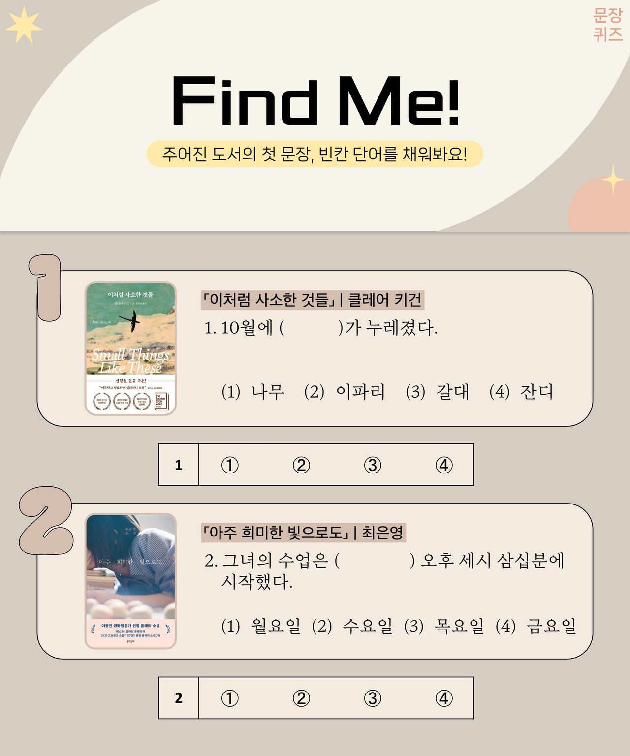 #해시태그로 연상되는 도서명을 맞춰 보세요! [문학 편 1번 문제] ‘해시태그’로 연상되는 도서가 있나요?아래 3개의 보기에서 ‘정답’을 찾아보세요! 정답은 바로 … ! [문학 편 2번 문제] ‘해시태그’로 연상되는 도서가 있나요?아래 3개의 보기에서 ‘정답’을 찾아보세요! 정답은 바로 … ! [문학 편 3번