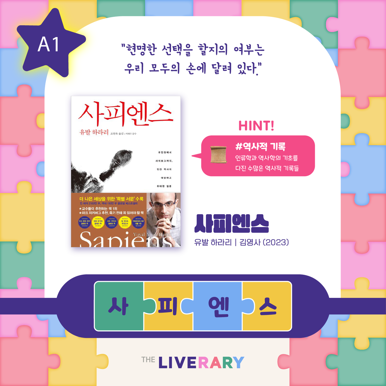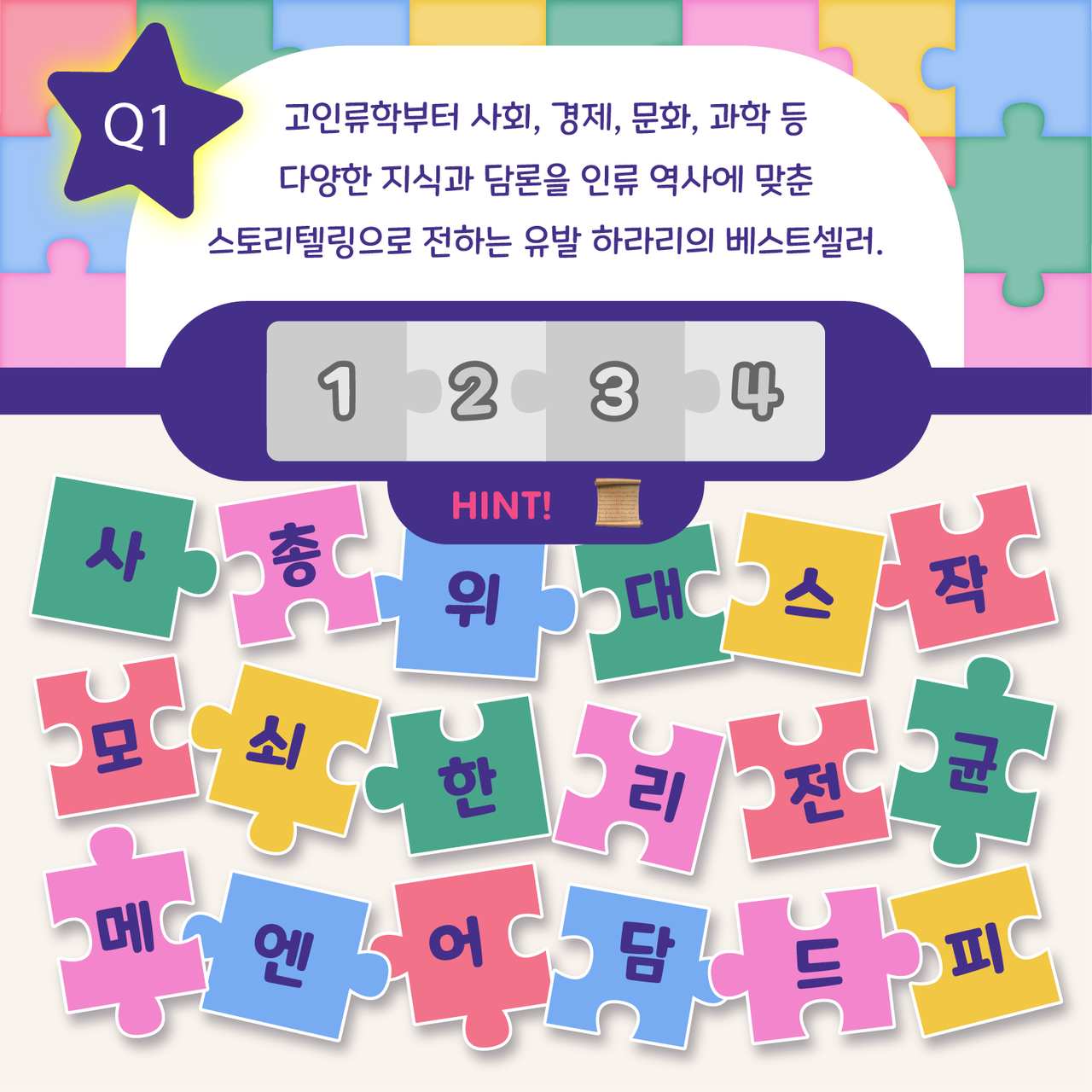연관 북워드 퀴즈는제시되는 검색어를 확인하면서도서의 제목을 맞히는 게임입니다.어떤 도서인지 유추해보셨나요?그럼 정답을 확인해볼까요~정답은 바로..