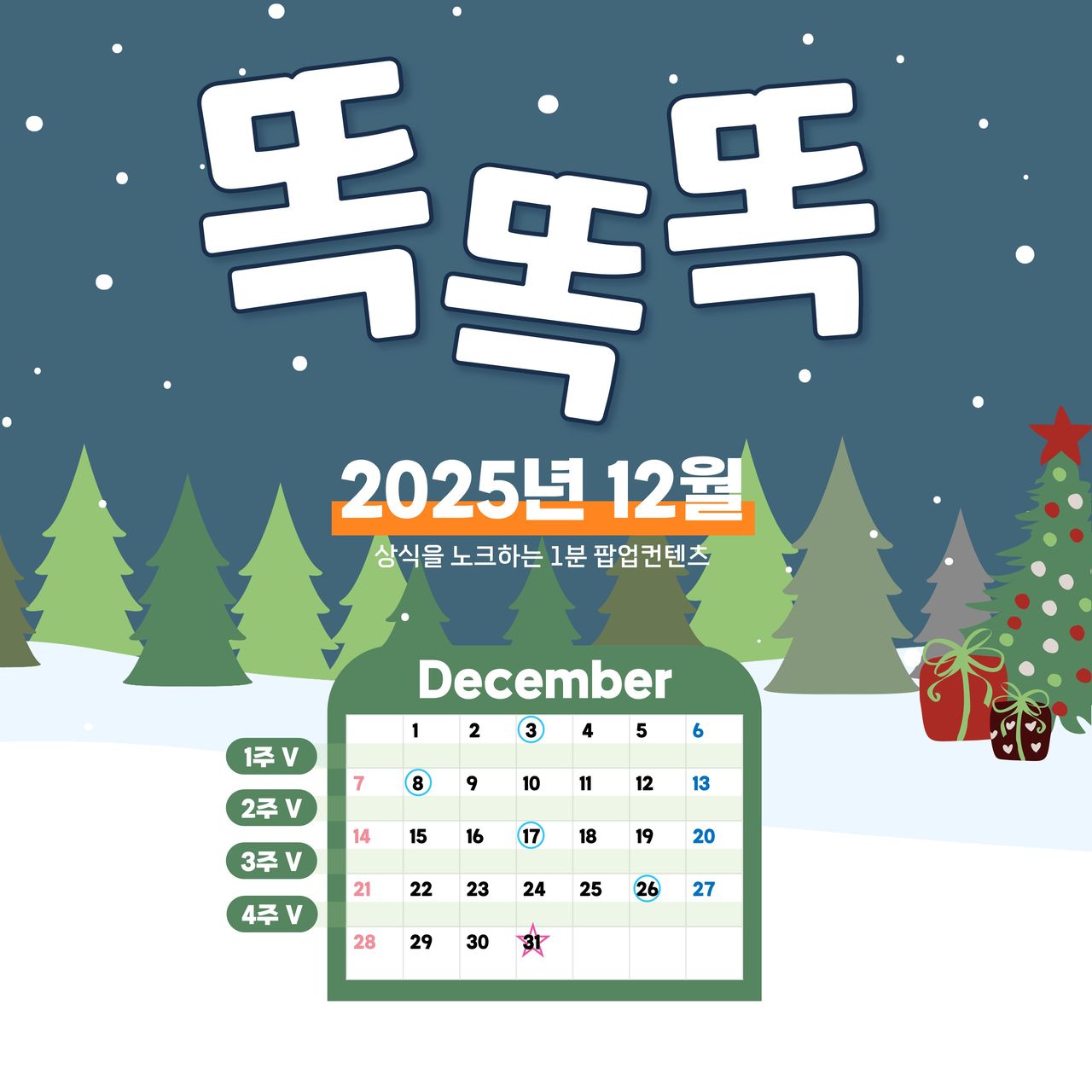 “똑똑똑” 상식을 노크하는 1분, 똑똑똑은요매주 딱 하루만 만날 수 있는 POP콘텐츠로 팝콘처럼 ‘팝’ 터지는 맛있는 1분을 상상하고 만들었어요.12월에는 ‘환경’ 분야에서 콘텐츠를 구성해보았습니다.매주 딱 하루…! 노크했던 똑똑똑 콘텐츠를 모아서 볼까요? 12월 1주_명언 편